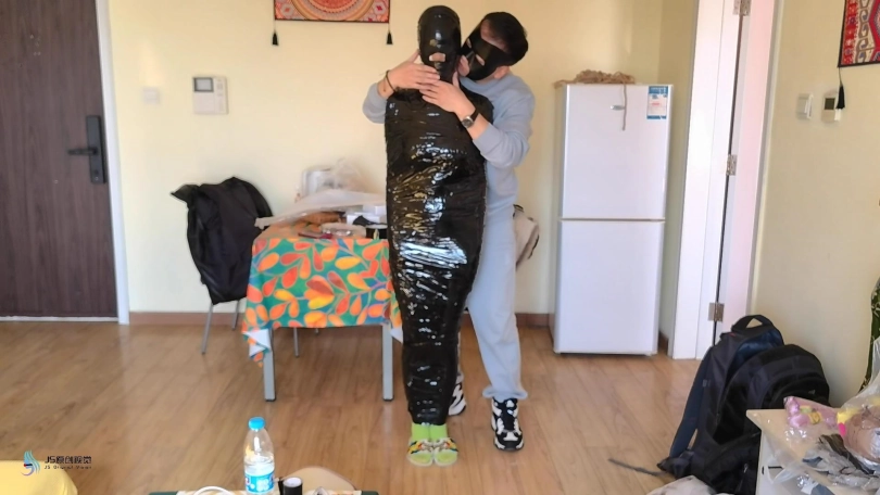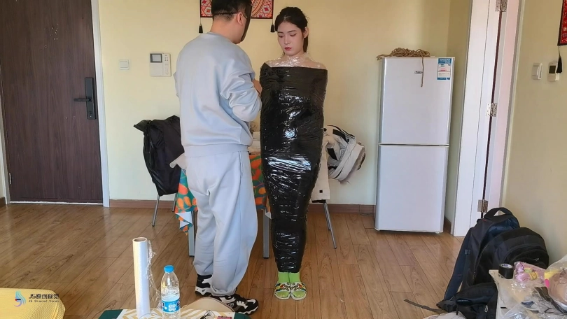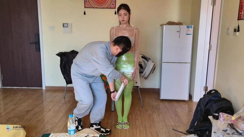 【JS】大美女【玖念】保鲜膜胶带木乃伊游戏鞭打彩色丝袜头部严密包裹