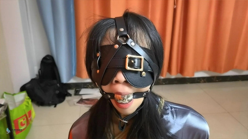 绑法:超紧欧式,⼆郎腿缚,眼罩,⻢具⼝球
