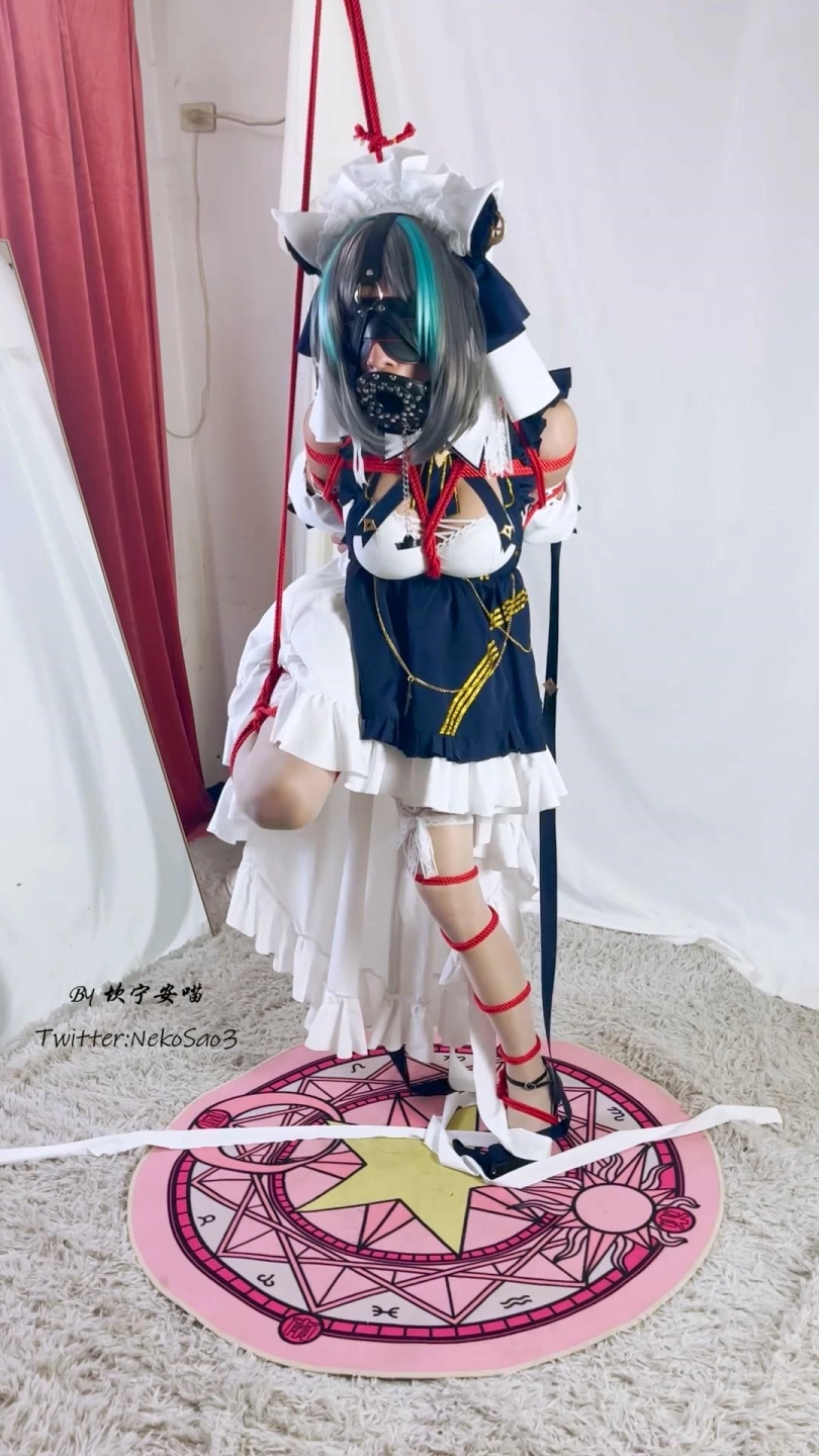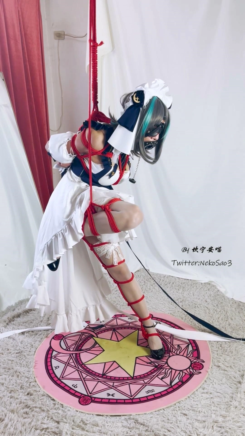 外出执行任务的柴郡被敌人俘获了,为了防止逃脱,他们将她捆得严严实实,将上半身和一条腿吊了起来,蒙上了双眼戴上了开口器,无助的柴郡只能进行着徒劳无功的挣扎……