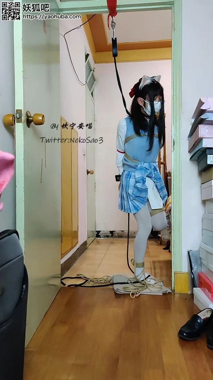 脖子的项链也连接到了吊绳上,让上半身只能被迫保持直立的状态,如果保持不住平衡向外倒的话就会勒住脖子,跪得不够直也会勒~~