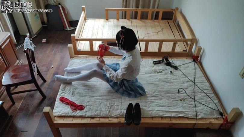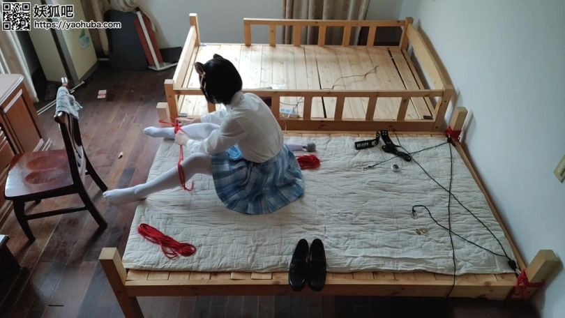 终于又可以偷空悄咪咪录自缚啦,这回是白丝jk!床上大字定时自缚!用了棒棒~