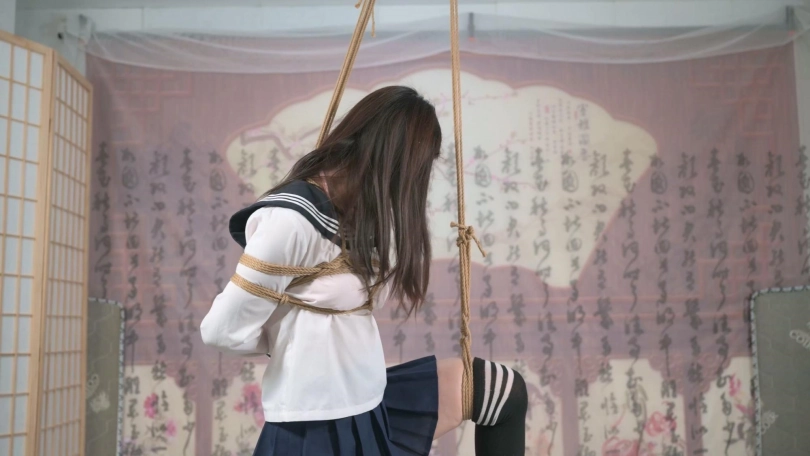 这是每个新模特必须经历的捆绑适应训练,这次的亮点是扒开模特衣服才发现,她竟然把内裤穿反了,还真有点像小日子穿的传统内裤,应了这次主题风格。