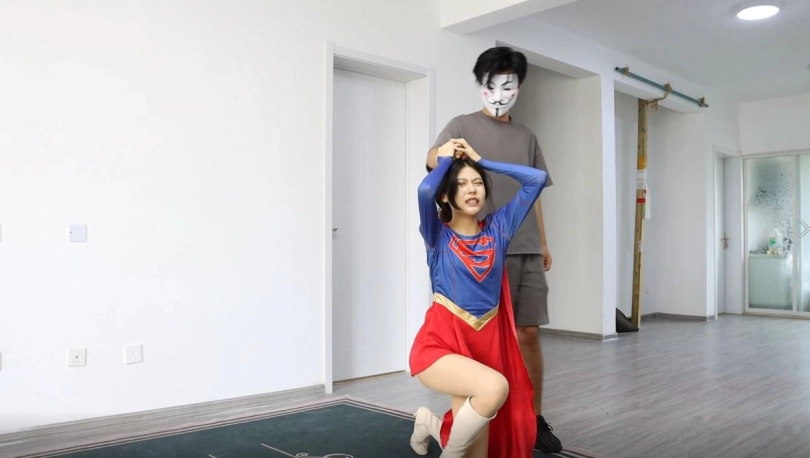 女超人米娅惨遭偷袭,被带回小房间一顿殴打。