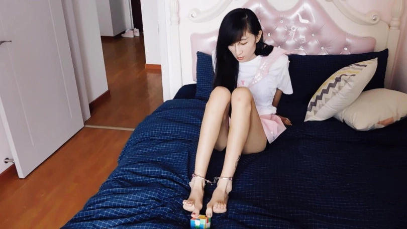 【趾间艺束】安艺戴镣铐用脚玩魔方、被惩罚挠脚心TK 手铐脚铐脚趾铐 水手服 驷马镣铐