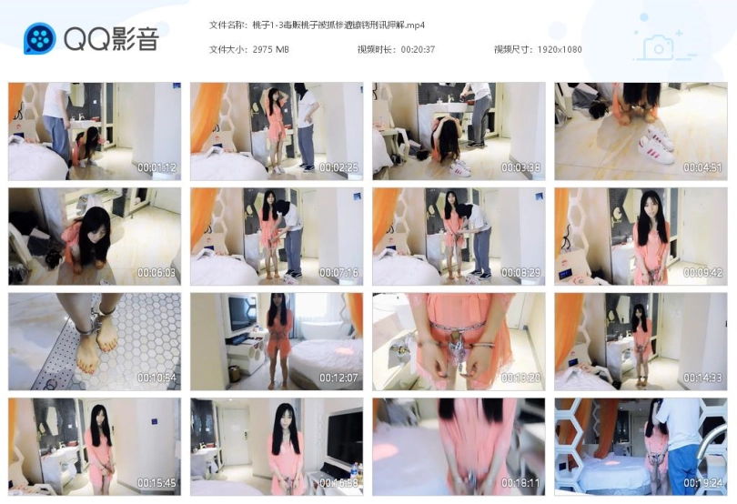 关键词:毒贩桃子被抓 惨遭镣铐刑讯 押解 手铐 脚铐 脚趾铐 长裙 眼罩