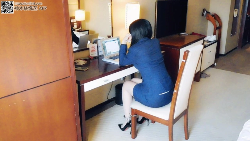 秘书被老板批评,因此被老板用长脚镣锁在椅子上办公,一只脚拴在椅子上。秘书干了一会,想偷懒,拉着椅子到处走,然后发现脚镣从椅子上弄下来了,很开心。老板回来看,秘书竟然没好好办公,而且从椅子上跑了出来,于是把她的两只脚都锁了起来,让她好好工作。秘书干了一会又不想干了,戴着脚镣下地走走,活动一下。老板再回来了,发现秘书又没好好办公,撕开丝袜,锁上脚趾铐、板铐脚腕,让她在椅子上好好工作。秘书工作一会,又累了,看着动不了,索性趴桌子睡了。老板看到后,十分生气,把秘书弄到床上,驷马镣铐,留下秘书走了。秘书挣扎很难受,一边求老板回来,一边咒骂老板。
