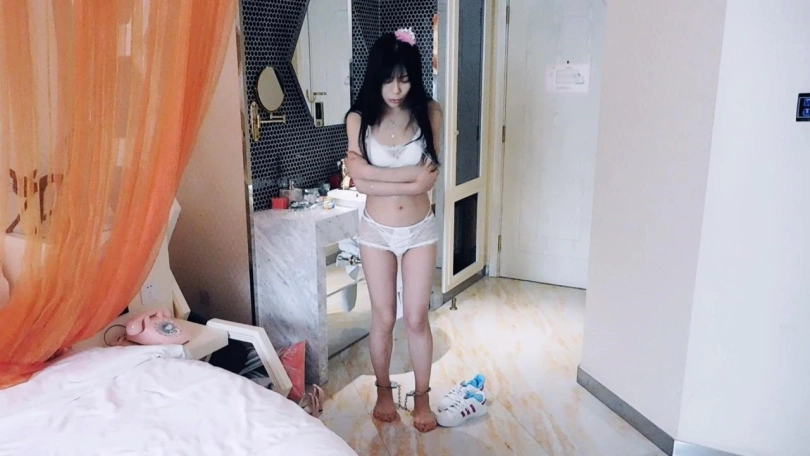 买家拉着妹子进了自己家,妹子被戴着脚镣。买家脱下妹子鞋袜,塞入[不可描述],要求妹子走路算作惩罚,妹子不听,被鞭打。妹子最终妥协,走路算作惩罚。买家给妹子换上戴上脚铐和脚趾铐,要求妹子继续走路,妹子又不听,又被鞭打。妹子走路,很难受很委屈。买家把妹子抱[X_X],驷马铐起来。妹子很难受,一直在求情,一直要哭。买家觉得妹子很烦,决定挠脚心惩罚一下,挠了一会妹子就老实了。买家想今天就爽一把,于是脱掉妹子衣服,解开内衣,弄下内裤,准备强暴妹子。完事后,把妹子衣服整理一下,给妹子弄上铁内裤,戴上口球、眼罩,然后离开。妹子说不出话也看不到,想着还没那啥了,万念俱灰。