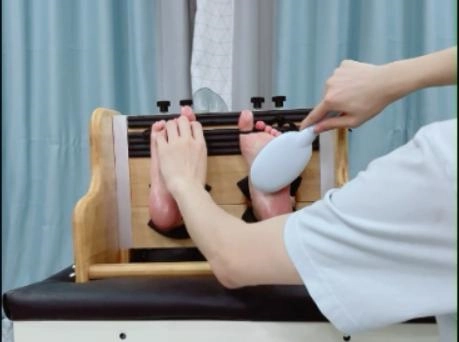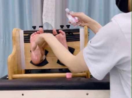 然后插上氧气管辅助呼吸,脚底涂油。