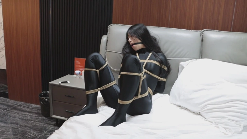 若楠小姐姐被带上项圈,移动范围被控制到了床头。