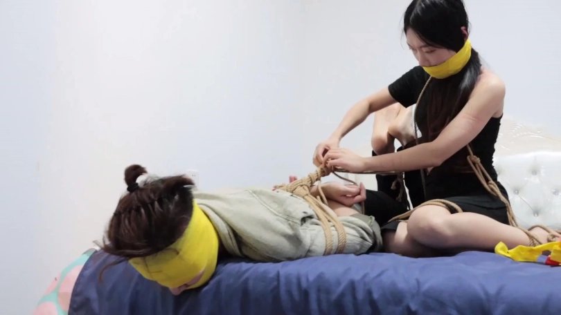 (一)上门讨债要账反被雌雄大盗捆堵封眼折磨的吴晗关琳琳二人奋力挣扎,最终被五花大绑的吴晗挣脱束缚,给被欧式直臂捆绑的闺蜜关琳琳解开,二女撕掉封眼胶带绷带适应光线后弄掉全身捆绳,而后互相帮对方撕掉嘴外自粘绷带与胶带,分别拽出口中坏女人李然穿了很长时间没洗的原味肉色短丝袜团与肉色连裤丝袜厌恶地丢掉,咒骂着李然和锁哥这对雌雄大盗。