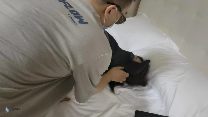 男人:看来你还不老实,我得把你绑结实点。(男人将蓝煊两脚交叉在一起,驷马捆绑在了床上)