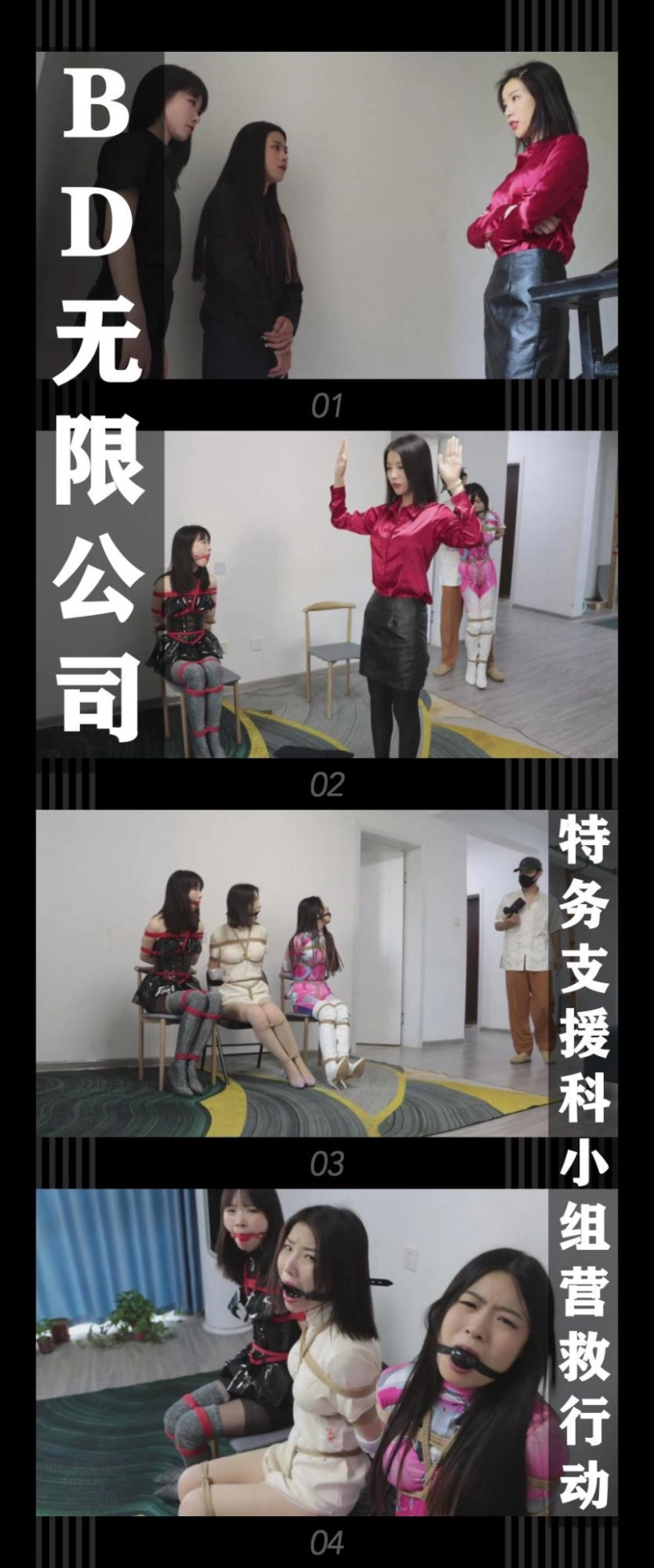 【逍遥】三人同时出镜!全程挣扎不断!制服长靴紧身衣丝袜高跟鞋这种元素满足各种xp!《BD无限公司第二季·特务支援科小组营救行动》