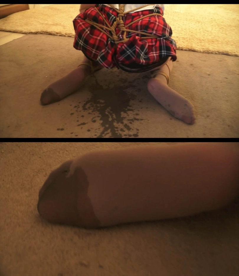 原来坏人给她喝的是利尿剂,实在忍不住的女学生最后只能痛苦的想小狗一样小便,把自己的丝袜脚都粘湿了。