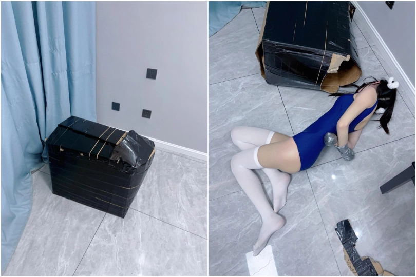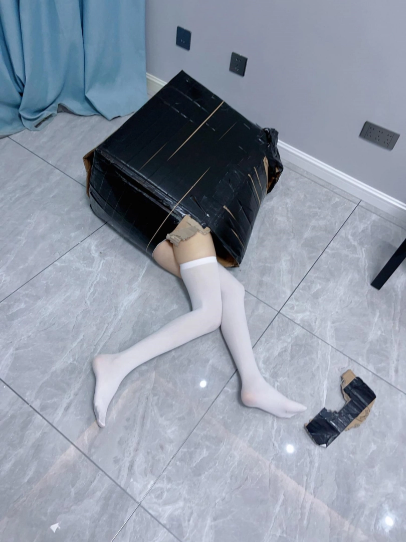 因为茶茶已经有过一次经验了,所以这次不给茶茶任何工具、双手反绑、手指也用胶带缠成拳头,让茶茶只能靠自己的白丝小脚踹破箱子脱出。