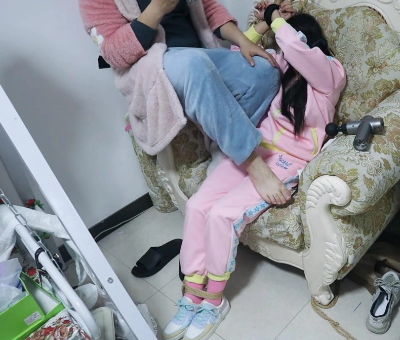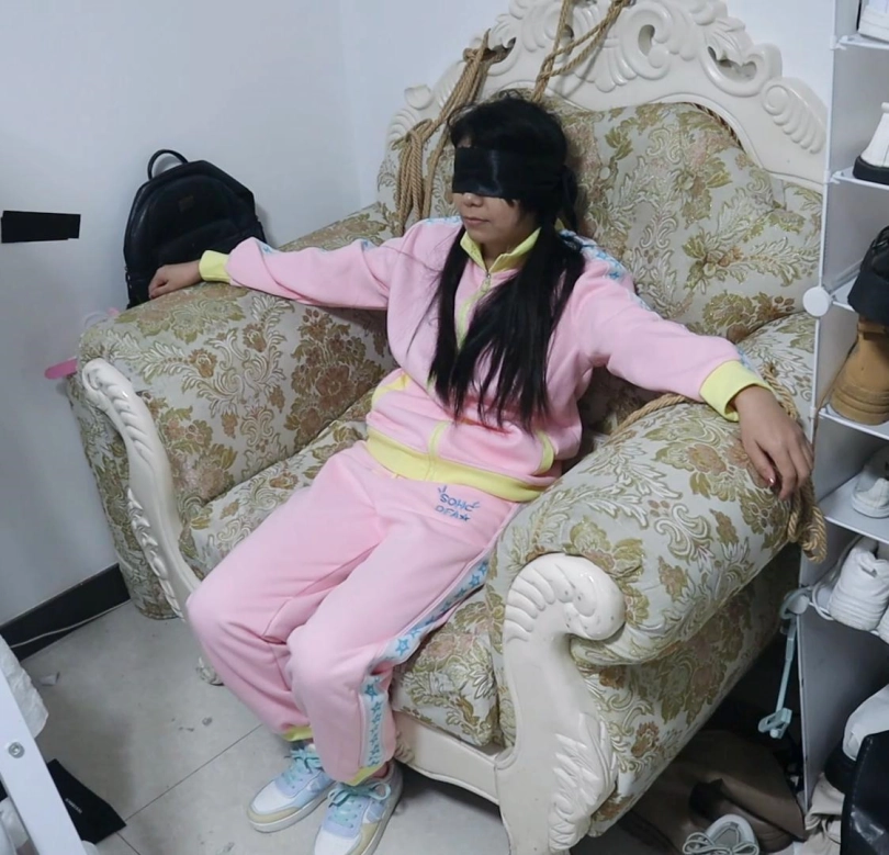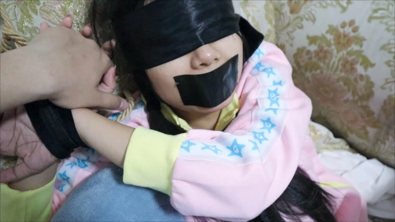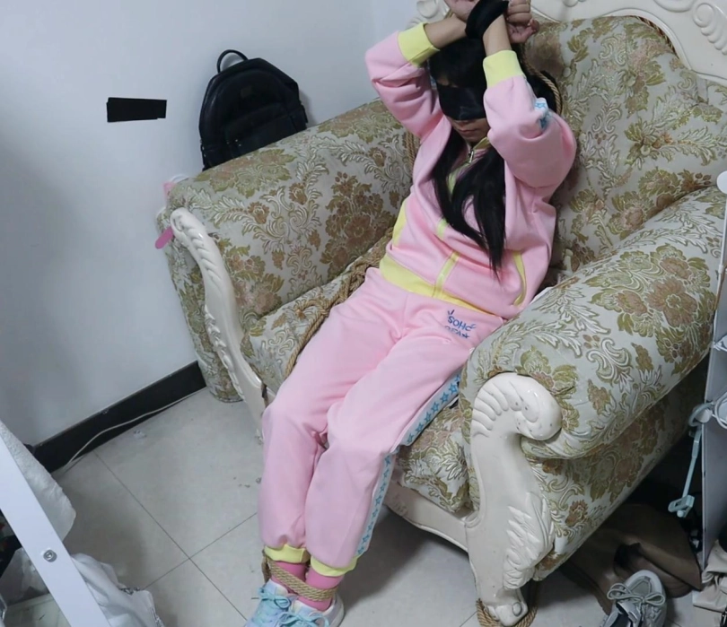 【荷仙少女】哪里来的粉色运动服姑娘,吊绑双手,捆住双脚 被一遍一遍的虐挠全身,啊啊啊的疯狂挣扎,然听见外面有声音,少女A直接贴胶带糊糊的喊出救命呀救命呀,结果被男主狠狠的捂住嘴,呜呜呜呜晕过去了