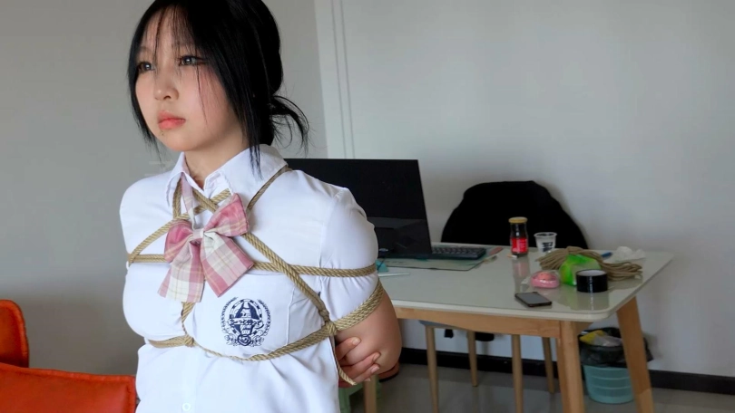 【子衿】小萝莉绳艺初体验 蒙眼口球一个人放置在家 圈子懂得多 接受程度也高