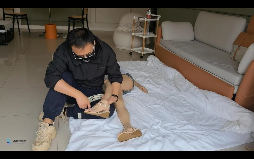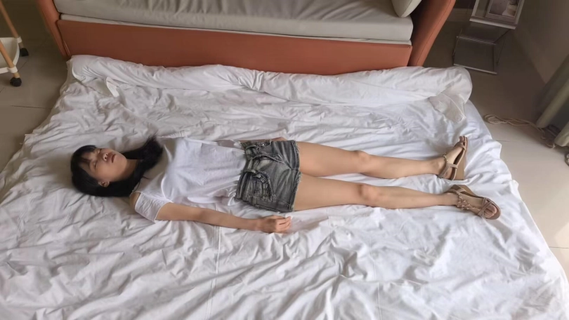 男主开门进来,拉起女孩的手看了看时间,说:“昏迷快一个小时了。今天太离谱了,骑车不小心撞晕了个妹子,看上去今天醒不过来了,不过看上去挺好看的,简直是完美的睡美人。”然后玩弄了一会她的手指,然后抬起女主的腿玩弄,并且玩弄了女主的脚,女主还是一动不动,男主又拽起女主的手把她拉起来使劲摇晃,女主还是没有反应。男主说:“多少年都没见过这样漂亮的女生了,趁着你昏迷,给你再拍几个照留个纪念”然后男主让女主瘫坐在沙发上,双脚都放在地上。(镜头给特写两分钟,并且有半分钟的脚部特写)然后男主又把女主放到地上平躺着。(镜头特写两分钟,半分钟脚部特写)然后男主让女主侧身倒在地上,就好像晕倒在地一样。(镜头给特写两分钟,并且有半分钟的脚部特写)然后男主让女主头朝下趴在地毯上。(镜头给特写两分钟,并且有半分钟的脚部特写)然后男主又把女主公主抱起来走了几圈(期间女主头无力后仰,镜头给女主的脸和双脚分别一次特写)然后男主把女主放回地毯上躺着。男主摇晃女主的身体,摆弄她的手和腿,做最后一次徒劳的尝试试图唤醒女主,可女主还是不省人事。男主就把女主双手十指相扣叠放在小腹,感叹道:“这妹子就算是昏迷中也这么美,可惜了估计见不到你清醒的样子。赶紧得帮你送走”随后把女主扛起来离去。