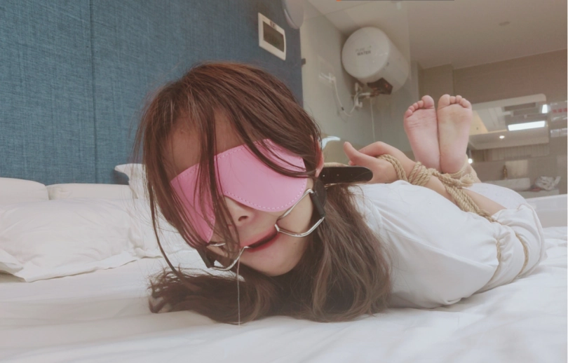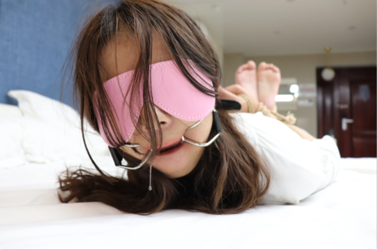 解开后因为口枷撑的太久妹子说话都说不了,嘴巴已经僵硬了。