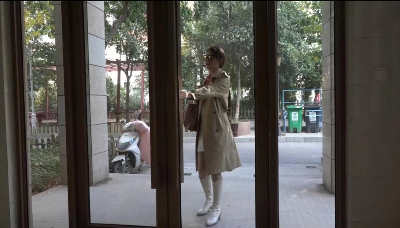 床下有人 女主 柳洋 服装 短裙 丝袜白色长靴 风衣