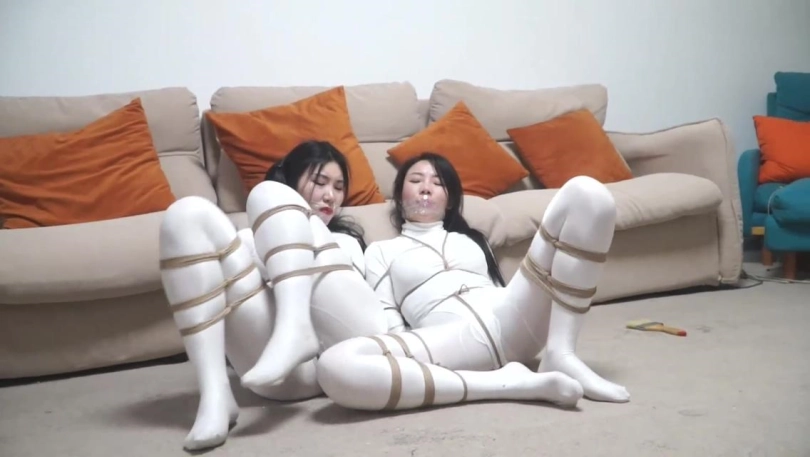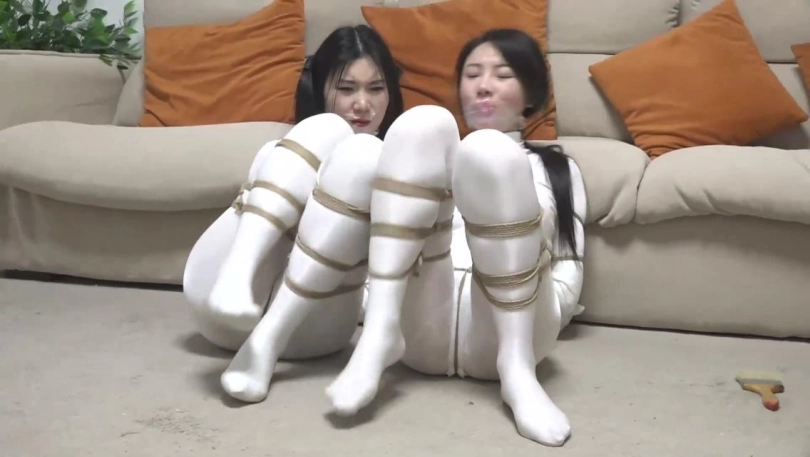 统一的制服,白丝油光丝袜和性感体操服,2位美女超级诱人,2个被直播贩卖的白丝女奴,虽然被绑成肉团但男人也给她们逃跑的一线生机,就在2个美女奋力求救的时候,一个陌生人闯入,结果陌生人没有打算救她们,反而玩弄起来。