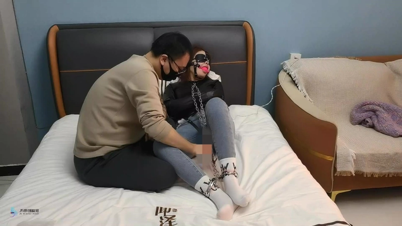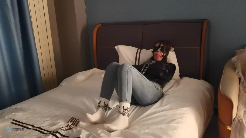 经过上次的治疗,感觉好些的女孩又来到了诊所治疗。医生让她脱掉靴子和衣服,然后拿来一件拘束衣给女孩穿上。用镣铐铐住女孩的双脚。女孩的嘴巴也被口球堵塞着,眼镜也被蒙上。医生关灯离开。将女孩独自放置在床上挣扎。