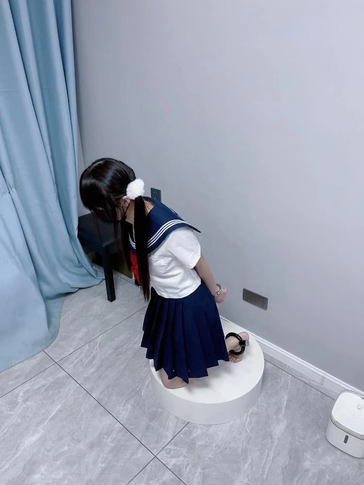 【咕咕精】双马尾jk茶茶裸足自愿女囚体验-裸足镣铐展示、指令罚站罚跪训诫、踮脚尖罚站、戴镣走路(封死钥匙孔)