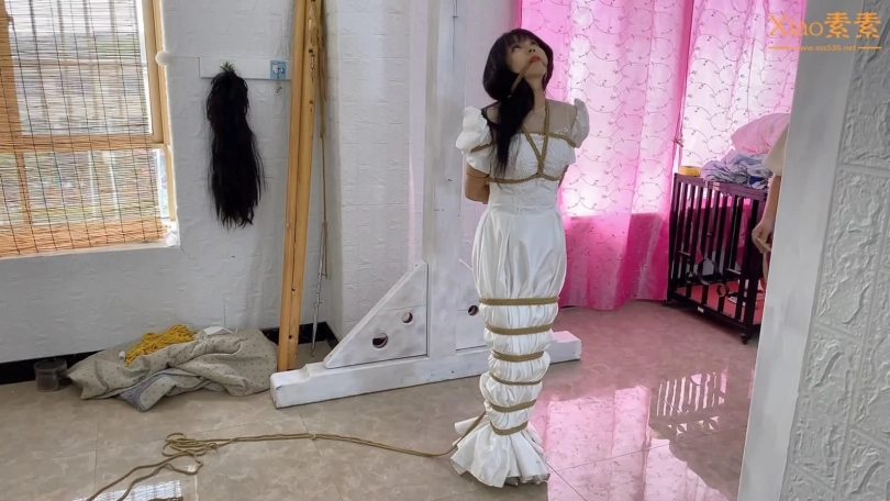 洁白圣洁的婚纱,在绳子的作用下,可以把一个美丽的新娘变成美人鱼一样让人心动的女孩,柱绑,吊绑,驷马。