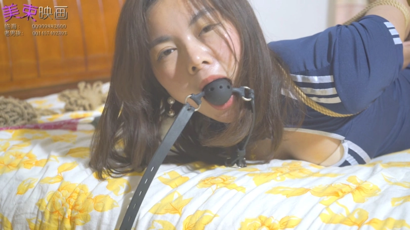 再次约媚儿来玩,卧室内随意绑玩,被绑成驷马后和我讨价还价,说不想带扣球,最后还是屈服了,不但带了,还勒很紧,只能呜呜声了。