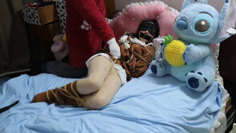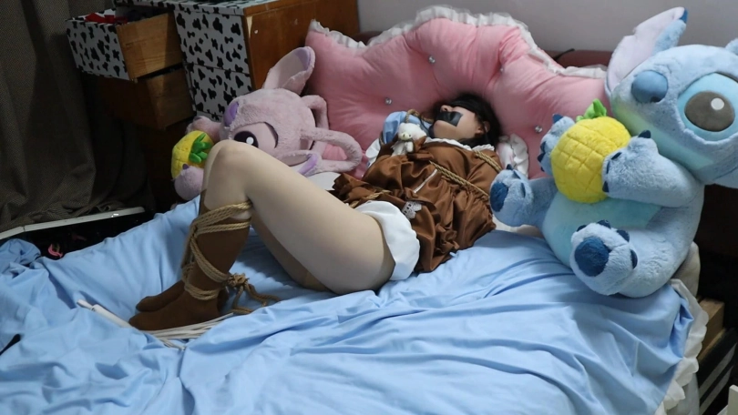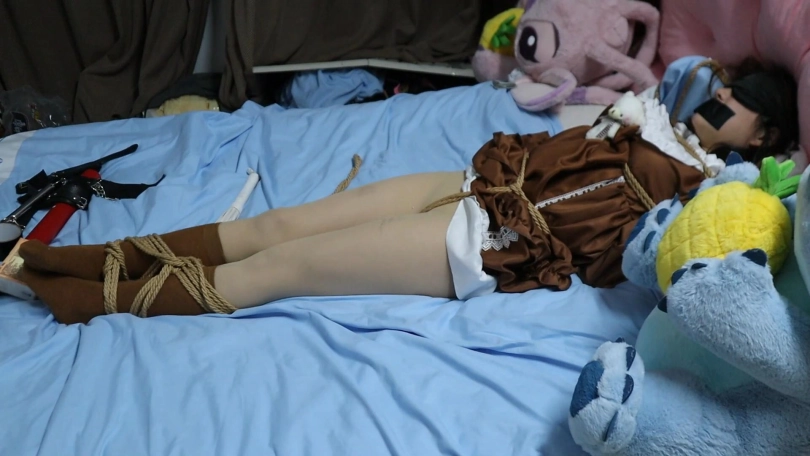 【领玥】股绳子虐待,超级捆绑痛苦,狠勒股绳子+扇脸+踩踏+蒙鼻+鞭打+拿棒子锤+tk 铐撩绑完绳子继续绑,本玥的惨叫呻吟声就没停下来过,绝对虐待可爱的棕色洛丽塔少女本玥