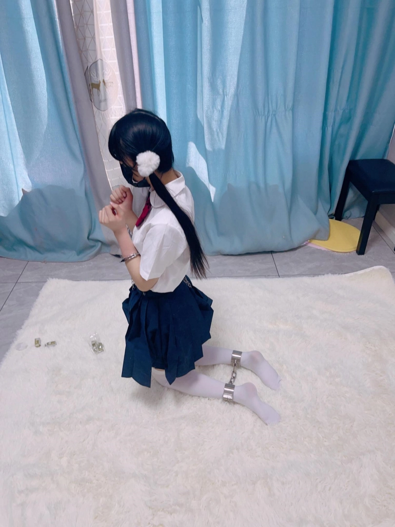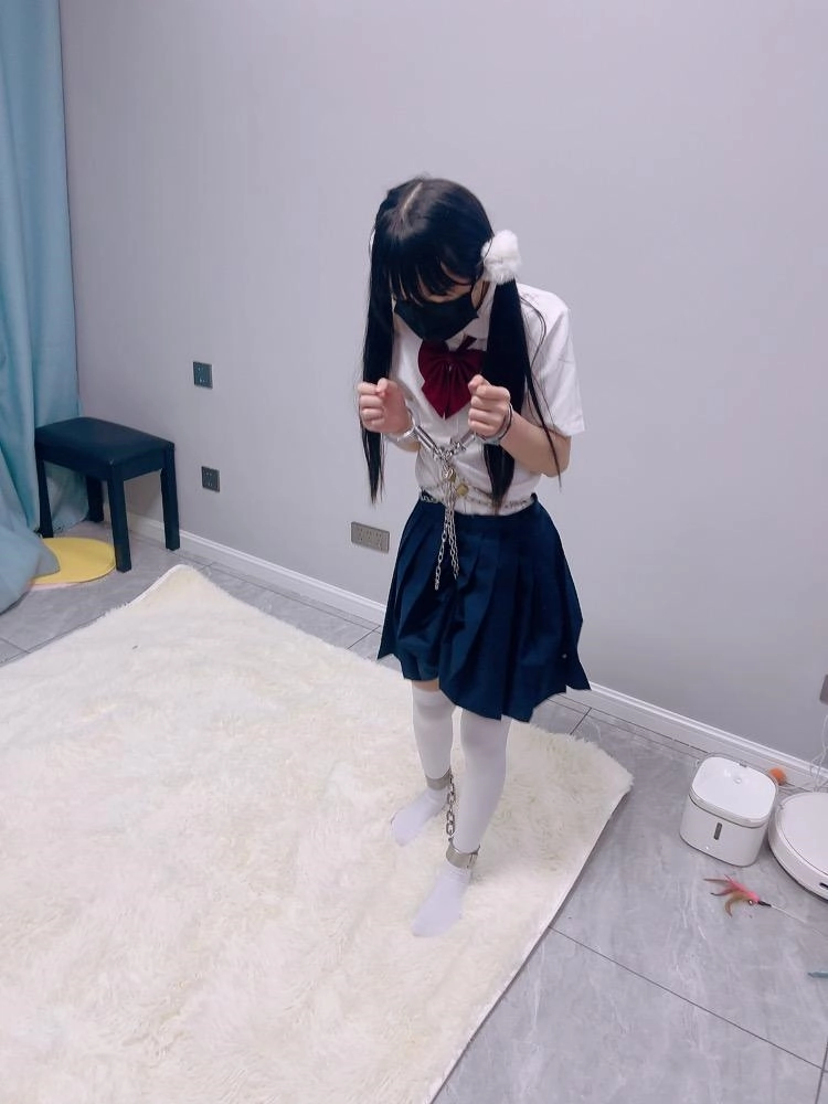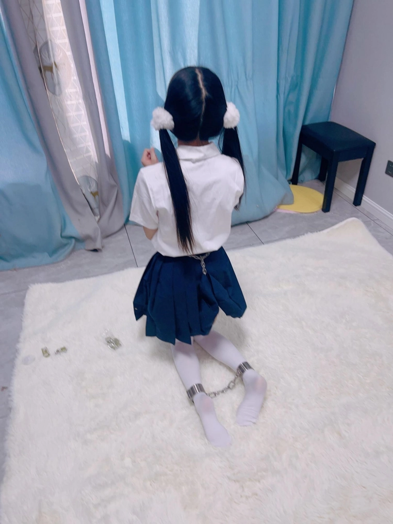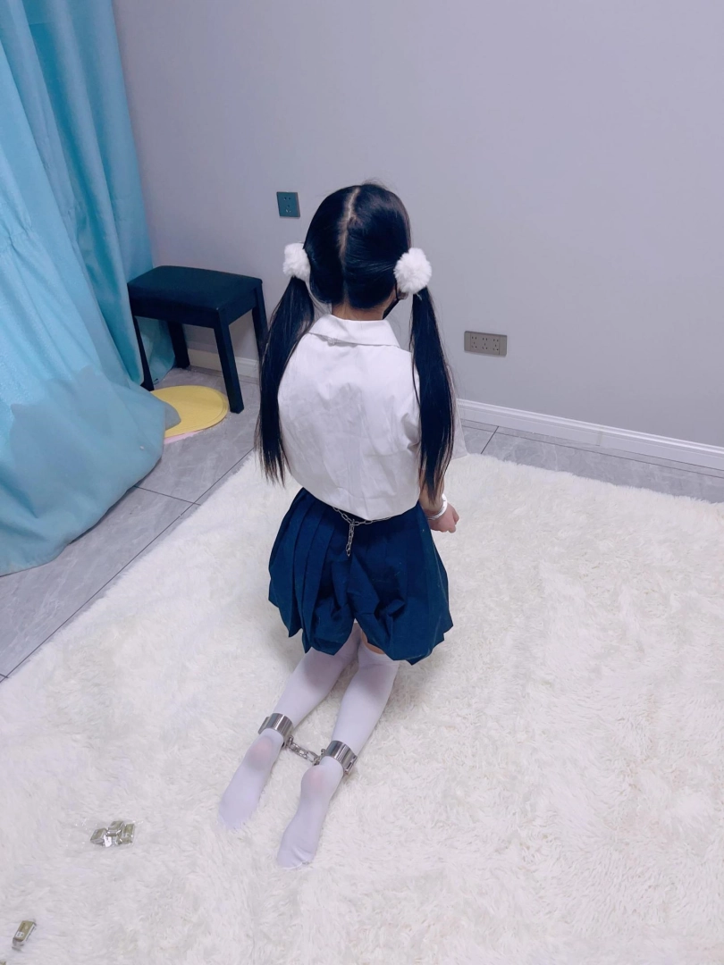jk白丝双马尾,镣铐是严丝合缝紧贴皮肤的不锈钢脚镣,手铐是筒铐。