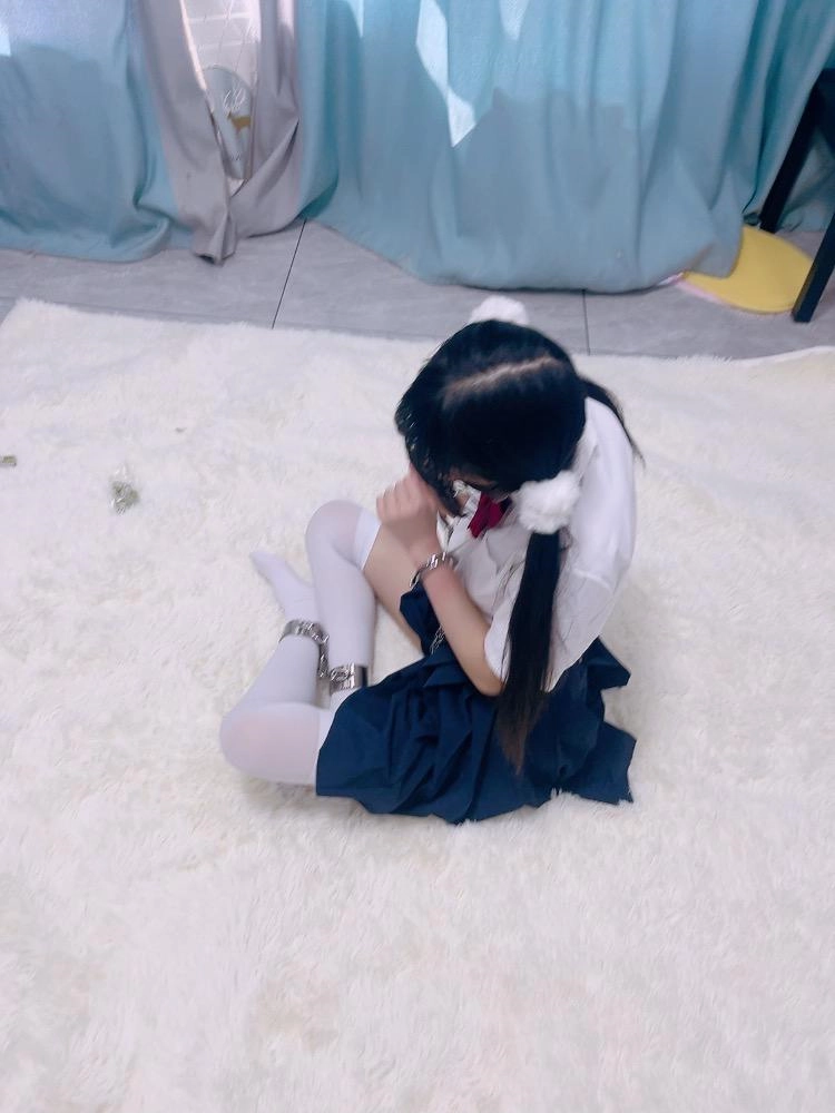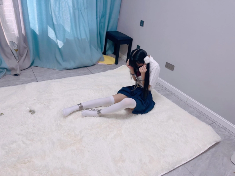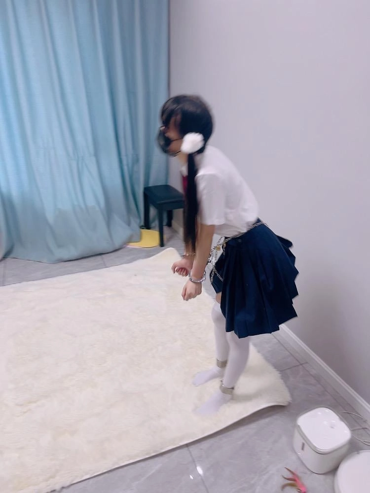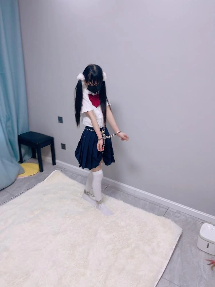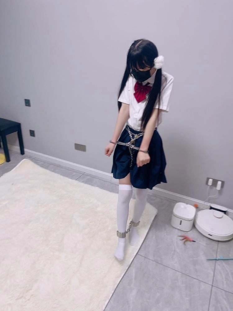 jk白丝双马尾,镣铐是严丝合缝紧贴皮肤的不锈钢脚镣,手铐是筒铐。