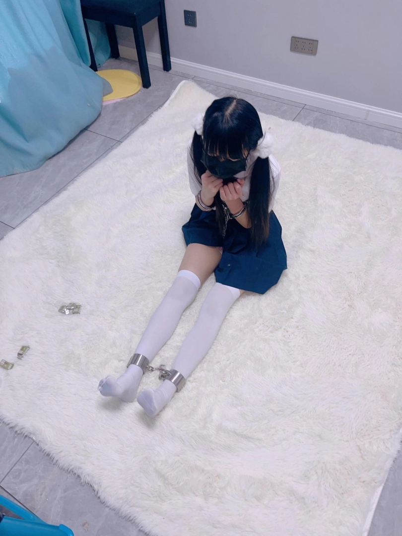 【咕咕精】茶茶女囚体验5-双马尾白丝萝莉佩戴镣铐展示+铁链股绳连接手铐