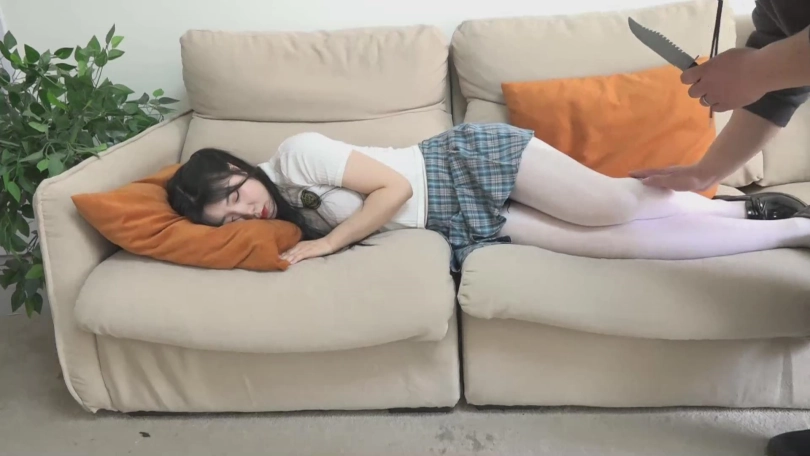 晗姑娘在家里睡觉的时候,歹徒撬门进来了......