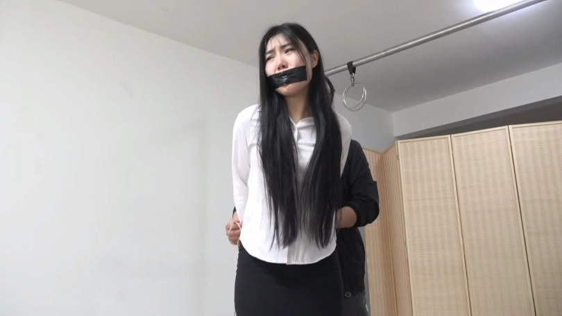 李晓梦家,王文娟取出钥匙打开了李晓梦家大门,走进次卧,果然在抽屉里发现了一个U盘,就在王文娟准备将U盘收起来的时候,突然一只大手从后面捂住王文娟的嘴巴,将一团丝袜塞进了王文娟的嘴里,并用胶带粘住王文娟的嘴巴。然后便开始捆绑王文娟,期间王文娟挣扎。