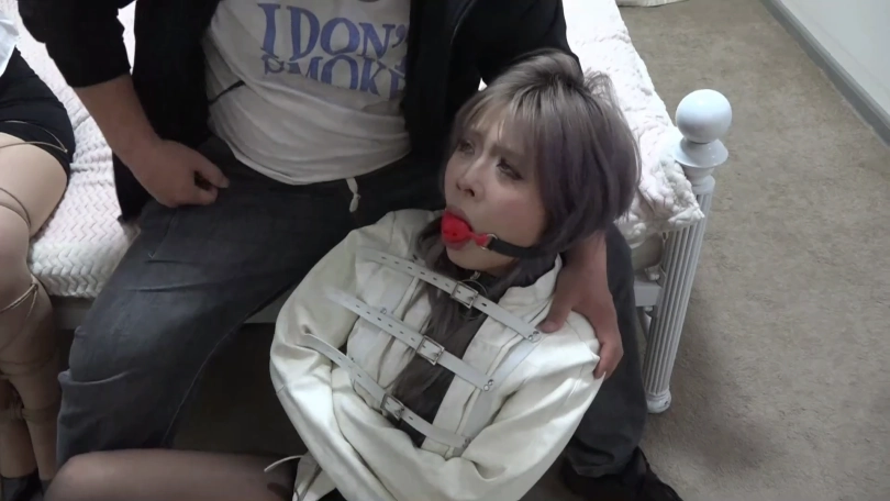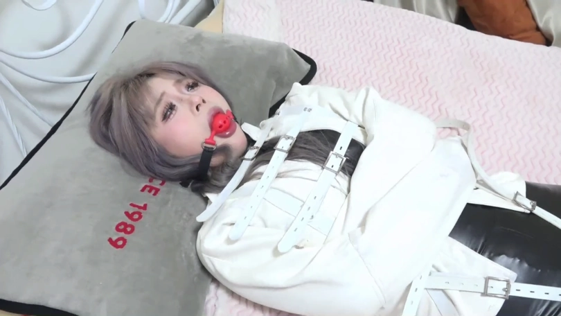 A市精神病院,李晓梦正在躺在床上,身上依旧被束缚着,拘束衣和脚镣,而且嘴巴也戴着口球。
