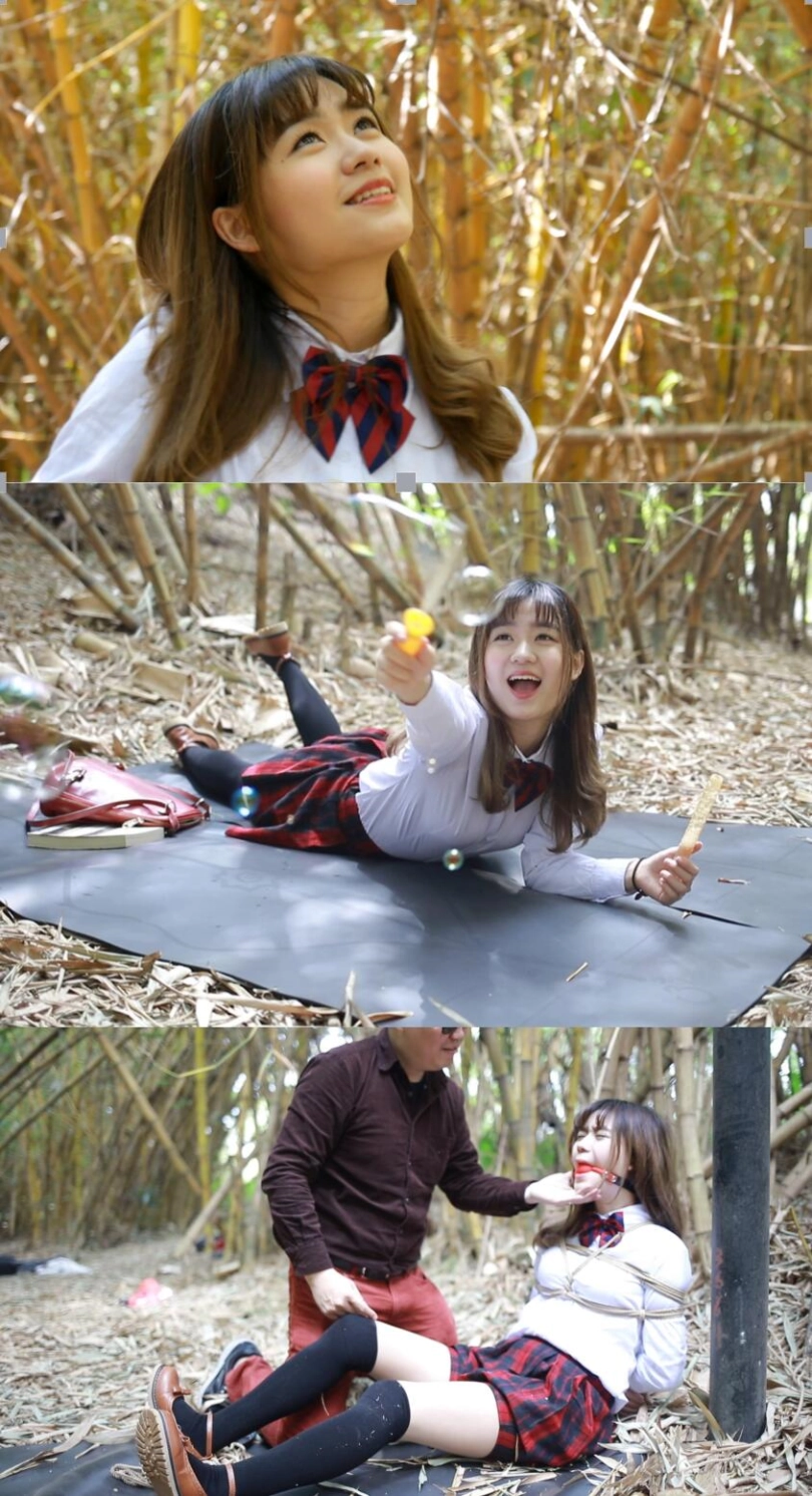 林中少女 首部户外实景绑,双匪调教,情节满满,剧情悬疑 更有绝世美颜 ,无辜清纯独行少女,林中遇匪。被两个坏人轮流绑架调教,先被怪叔叔绑架禁锢,毛巾与胶带堵嘴,挣扎呼叫不能,又遇落尽下石的变态胁迫,捆绑,口球,威胁
