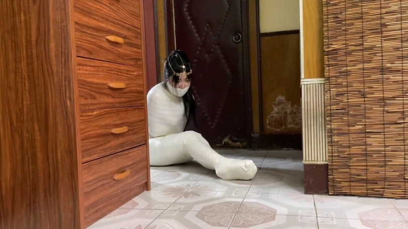 【逍遥】《美女直播的木乃伊诅咒 下》主播美女被诅咒变成完美的木乃伊 倒霉的美女只能像人茧一样满地蠕动妄图逃走 模特卖力表演挣扎蠕动 全包爱好者不要错过!