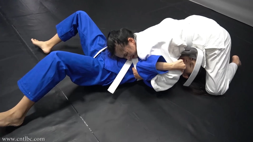 Jiao and Ting had a judo match. Wearing judogi, they started the match with a friendly attitude. They started on their knees. They used a lot of judo skills to try to subdue each other...