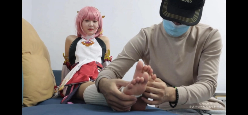美女cosplay原神角色,被男人弄晕后玩脚摆弄身体。