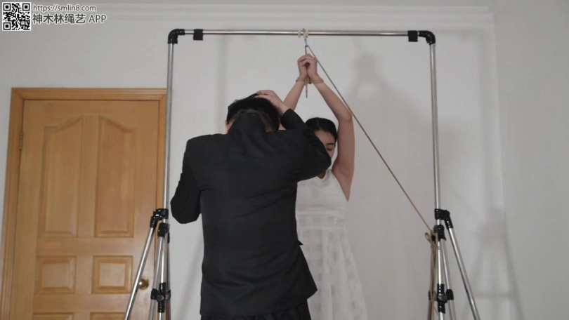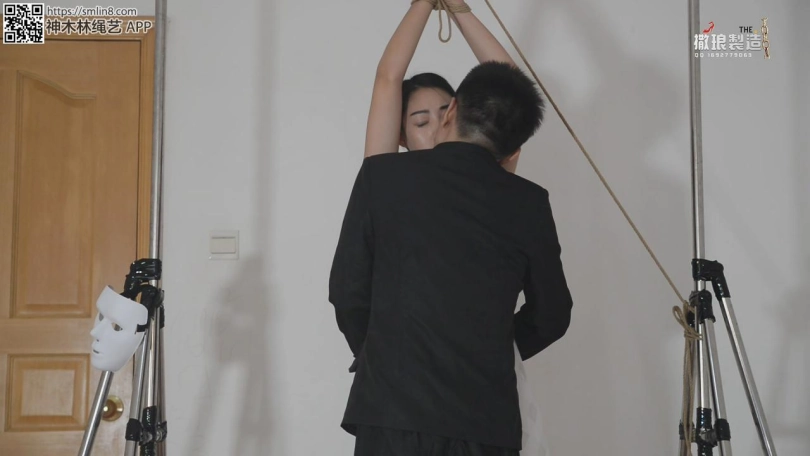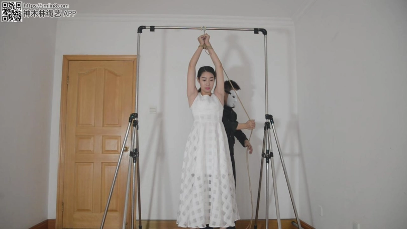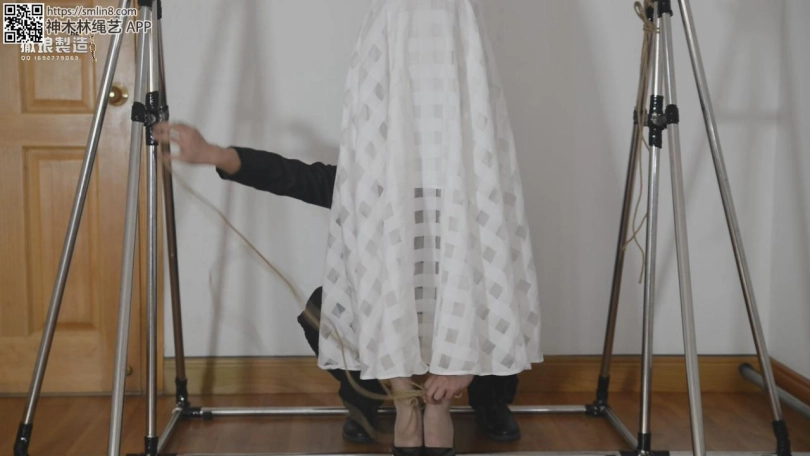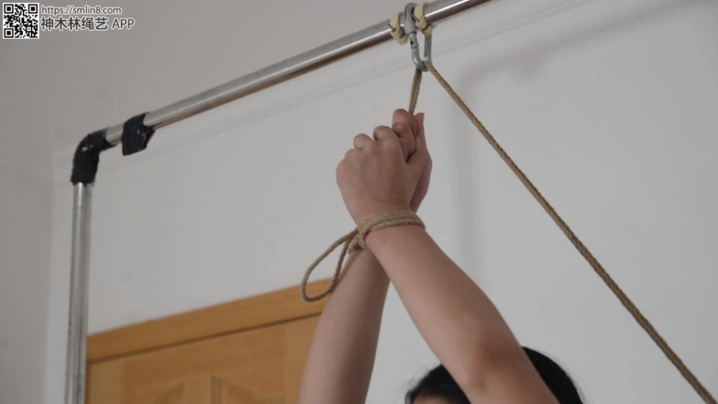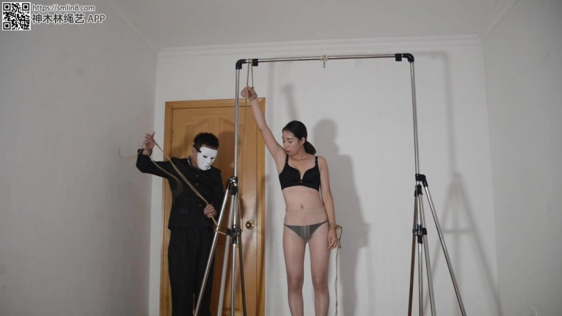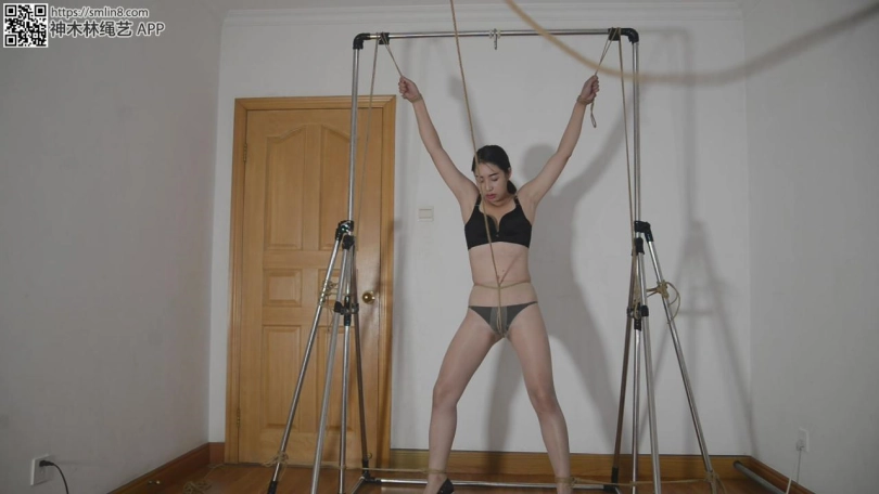 本次展示的是悬吊架模式,经计算和实际经验,本次的搭建方式是最为牢固和用材料较少的一种方式,模特好像对棒棒反应很大,呻吟不断———