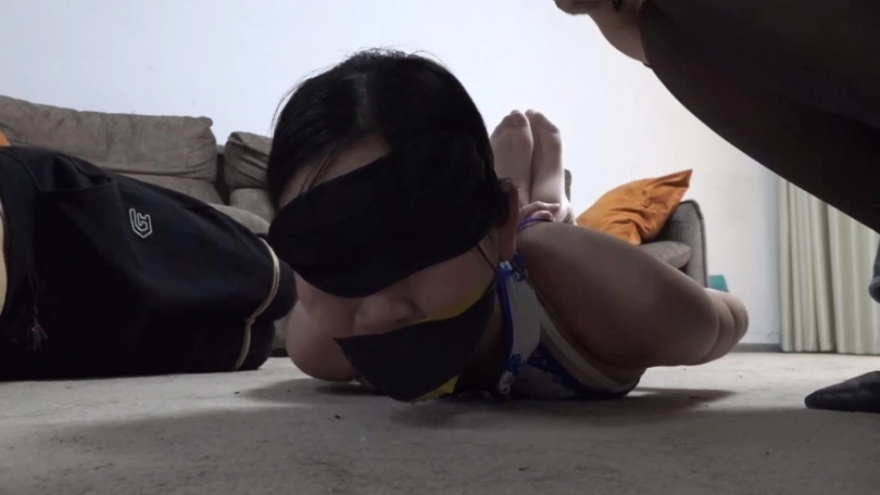 看点:二次捆堵,塞嘴过程特写、胶布绷带多重缠绕封嘴,女模特白色连裤丝袜脚面近距离特写。