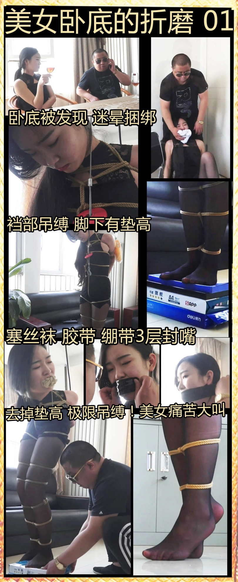 这次回归最擅长的剧情片,这次是有趣的美女卧底被发现折磨的剧情,剧情非常有趣,有踮脚物吊缚,之后再一点一点取掉踮脚物,形成最紧绷的,痛苦的吊缚!捆绑过程中模特都哭了,在此道歉,以后会注意的~不好意思了。。