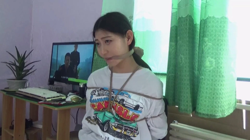 【逍遥】劫案惊魂之别让陌生人进门 网瘾少女引狼入室,丝袜勒嘴捆绑,千钧一发