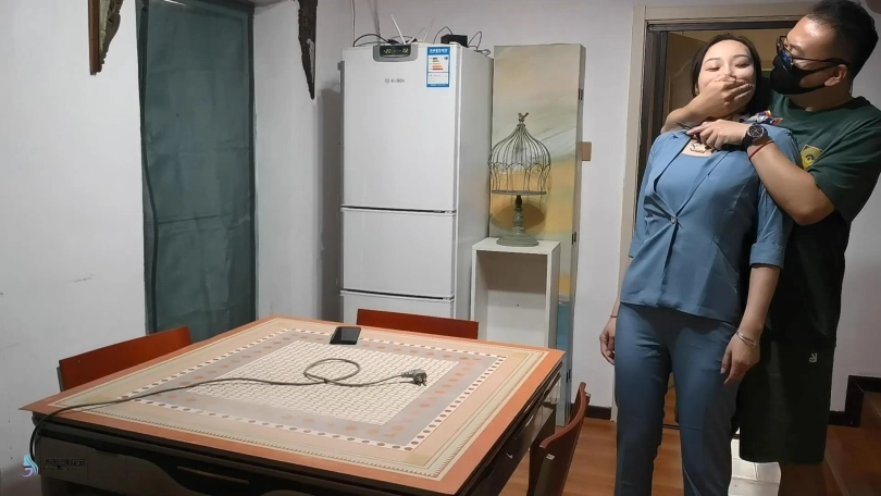 我是一个律師,現正調查一宗商业詐騙案件,並已掌握了一些重要證據,現在已把它藏在家中,準備進行起訴。我已得知被調查對象,陳老闆可能會對我不利,所以已與最信任的同事約好,當聽到我說:「牛肉好吃」時,我便有危險。在那天,我刚完成工作回家,当时已是深夜,我一打开门把灯亮着后,突然被人以手掩口并被刀子架着颈,贼人说「我还以为你沒那麼早回家,怎料你突然进来,你先不用怕,只要你肯配合便没有生命危险」我当时十分惊恐,怕被伤害,唯有在不能说话的情况下点点头,示意配合。贼人放开律師後,并叫他转身面对着自己,跟着从袋里取出一條內褲,并说道「这是从你的房中拿出来的。你先把它塞进自己的嘴里,跟着再用你頸上的絲巾把自己的嘴绑起来,绑得实一点」哈妮唯有跟着做。賊人跟着便叫哈妮把外套脫下,只剩吊帶背心,以防哈妮身上藏有求救工具。哈妮脱去外套後,贼人叫哈妮把手放在背后,并说道「我现在要把你绑起,你老实一点,否则后果自负」说完后,便从袋里取出绳子。Scene 3