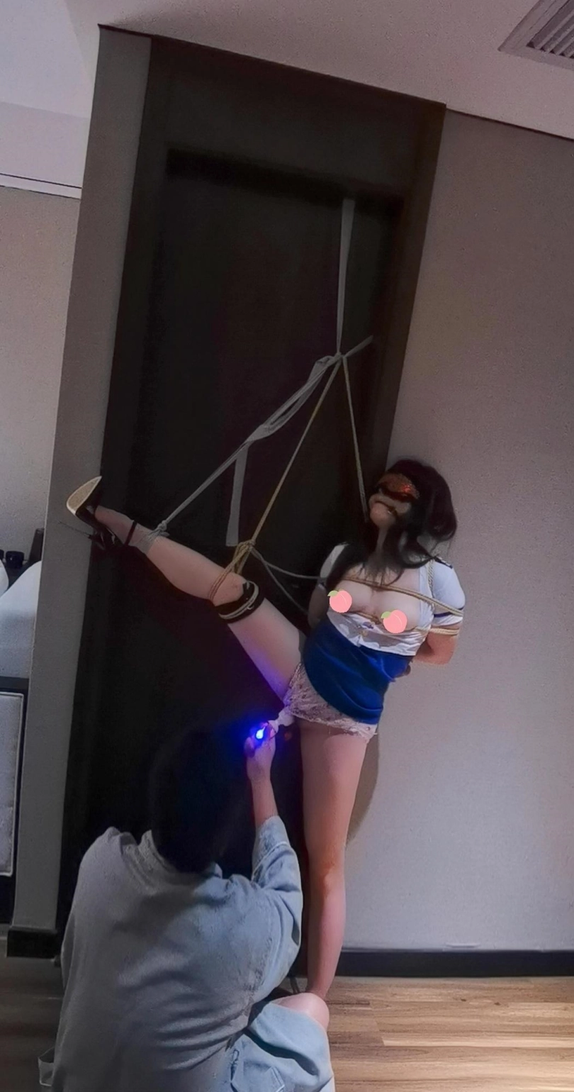 闺蜜系来问的人太多了,丫头的闺蜜,舞蹈老师,第一次,第一天晚上由于没有准备绳子道具,来了之后害羞的不得了,就用睡袍的腰带驷马捆绑然后某团买了个小玩具,捆好之后睡觉!!第二天绳子,情趣衣服,道具都到了,开始加大难度,沙发上极限一字马强高,单腿吊强高,[X_X],各种塞,此时她害怕极了,但是又不敢说话!!!后面继续luo绑,然后,捆绑洗澡,捆绑换装,捆绑跑基,捆绑口环舌头训练,整个调教过程完整100分钟绝版制作。