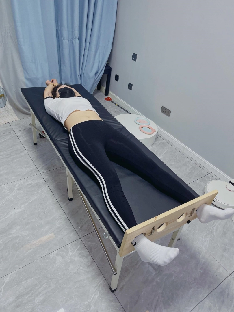 服装:运动服+紧身裤,运动白袜+脱袜裸足
