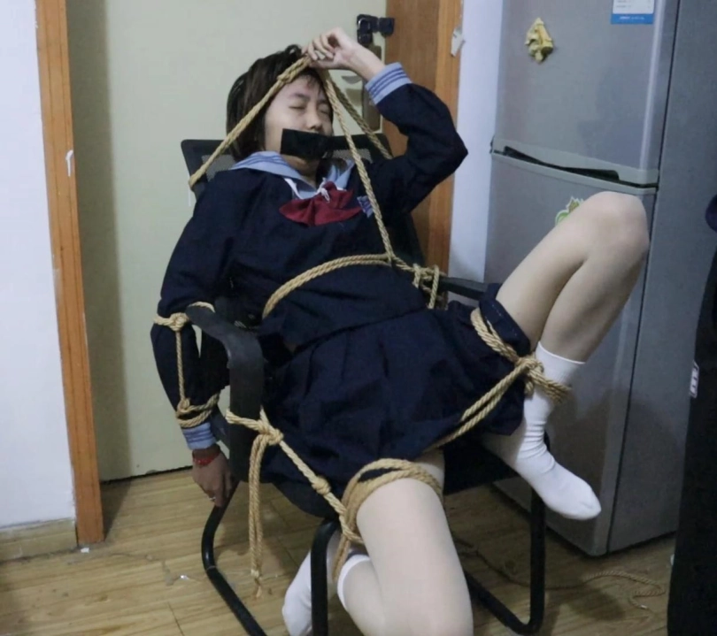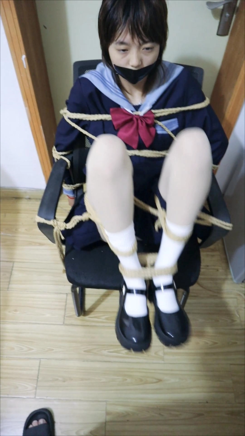 【荷仙少女】忽闪着大眼睛懵懂的看着被紧缚在椅子上的可爱水手服少女B本本,全身都是绳子挣脱连腿和脚都被起来不会很容易吧,白袜玛丽珍鞋不停的被蹬掉挣扎中还要被揩油后玩弄,露出了痛苦的表情 双视角纯捆绑