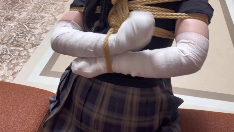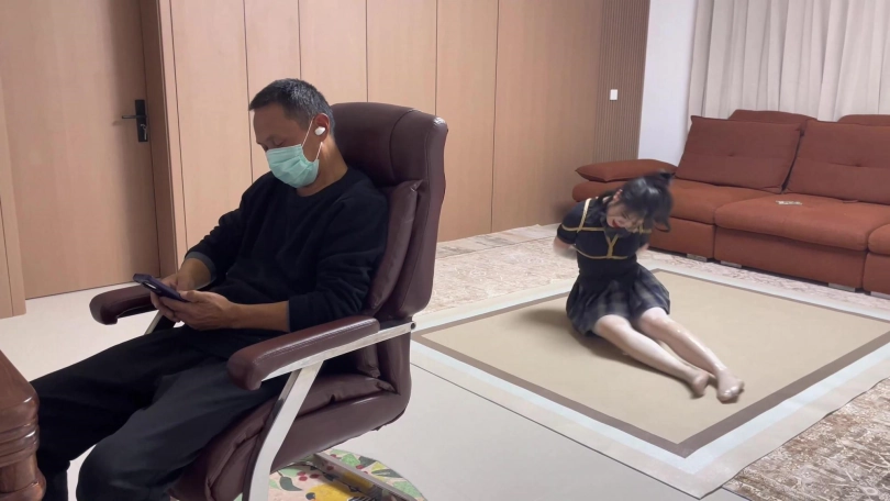 美女听到敲门声,朋友在边上带耳机玩手机没听到,她只能自己开门,她收到一个奇怪的快递,发现地址送错了,但是她还是好奇打开了盒子,发现了绳子,粘液瓶,和绷带。正在她纳闷这些是什么东西的时候,绳子和绷带突然将她的上半身捆绑了,她立马想向朋友求救,但粘液自己飞起将她的双层白丝美腿浇满了粘液,导致她爬不起来。他不停哀求但朋友带着耳机完全听不到,最后粘液把她的嘴巴也粘死了。