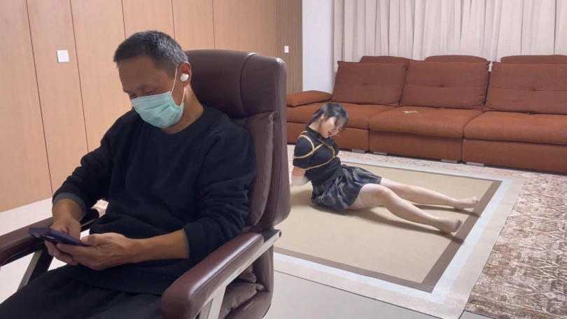 【逍遥】《双层白丝美女—油光丝袜01》超清4k画质 粘液丝袜 双层白丝丝袜包裹 朋友在边上听歌 美女努力蠕动求救不能