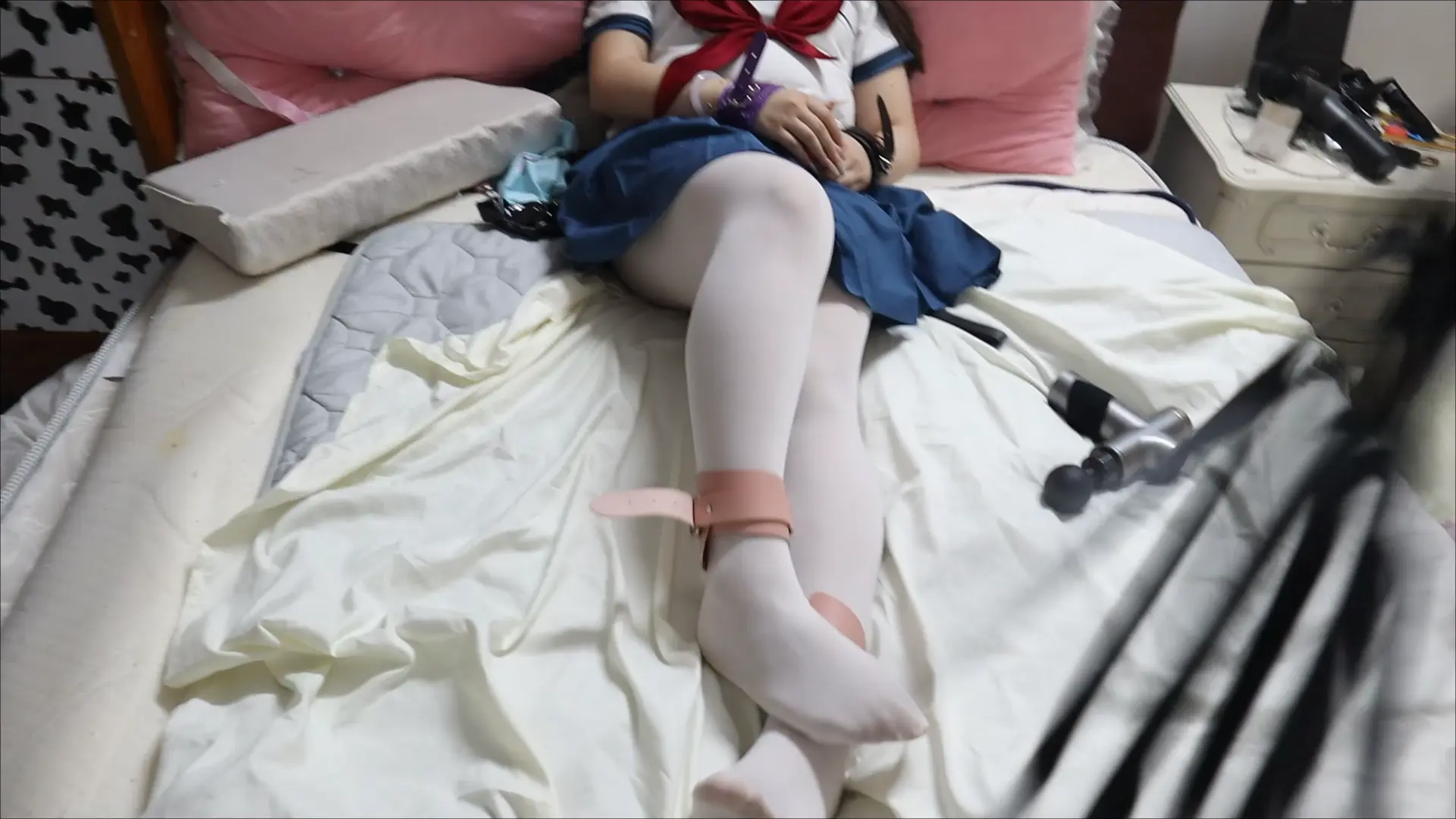 【荷仙少女短篇集】 抿嘴害怕中的内向水手服白丝萝莉tk玩弄 鞭打 震震到发抖的少女 4